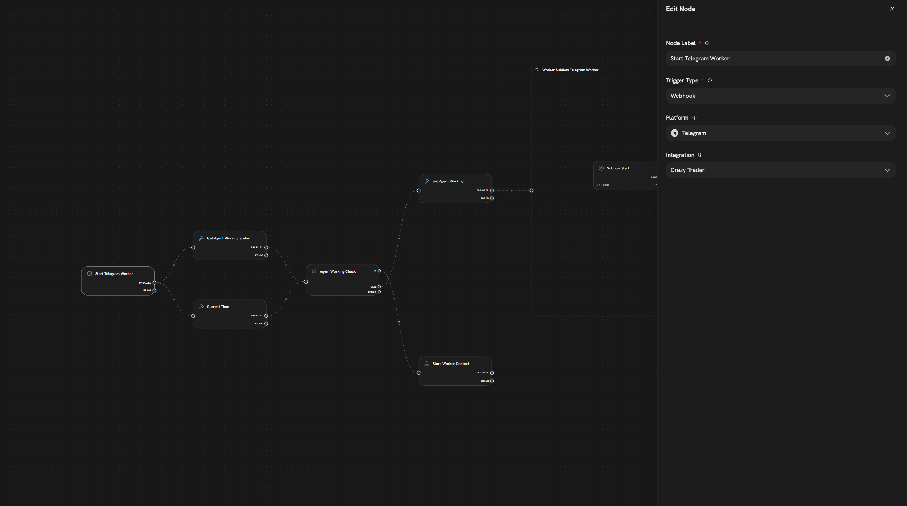 The workflow construction logic differs significantly from n8n, so despite my experience in other environments, I was unable to configure and run a simple workflow that would receive a webhook from Telegram and return the result.